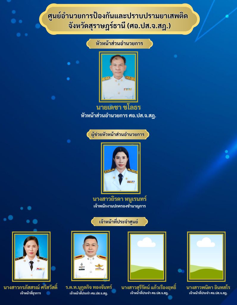 - ส่วนอำนวยการศูนย์อำนวยการป้องกันและปราบปรามยาเสพติด จังหวัดสุราษฎร์ธานี