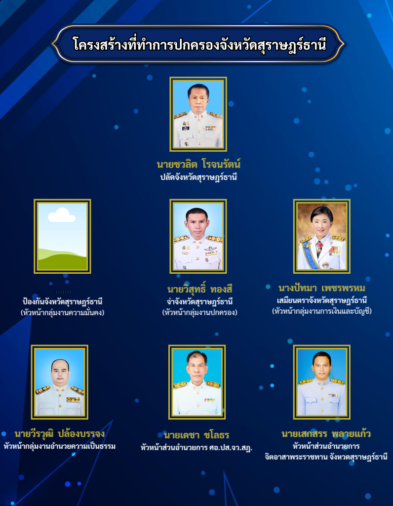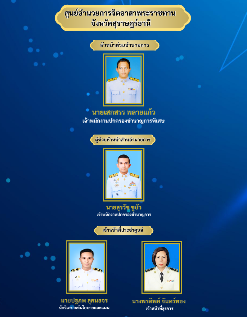 - ส่วนอำนวยการศูนย์อำนวยการจิตอาสาพระราชทาน จังหวัดสุราษฎร์ธานี
